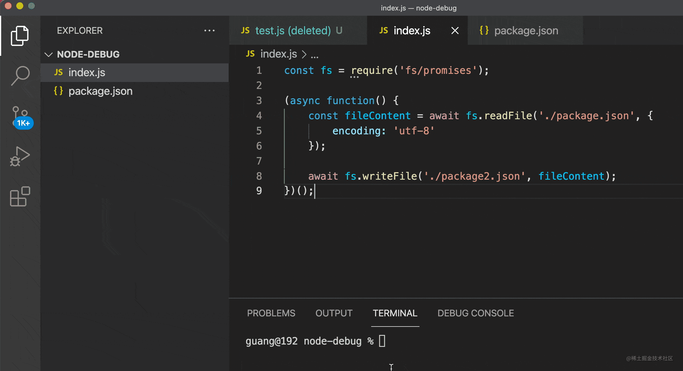 就是简单的文件读写,先用 node index.js 跑一下:
