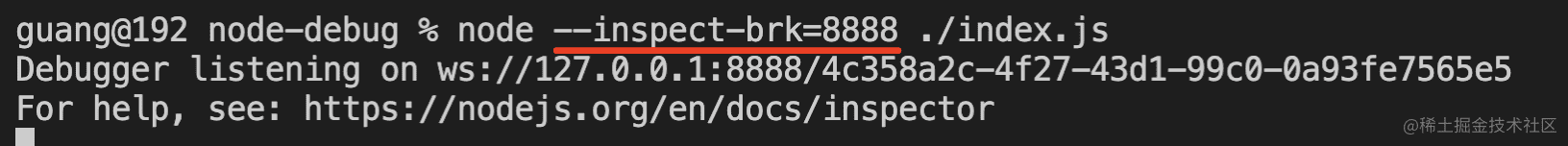 启动 ws 调试服务的方式就是 node --inspect 或者 node --inspect-brk。