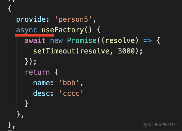 如果想动态生成对象,可以使用 useFactory,它的参数也注入 IOC 容器中的对象,然后动态返回 provider 的对象。