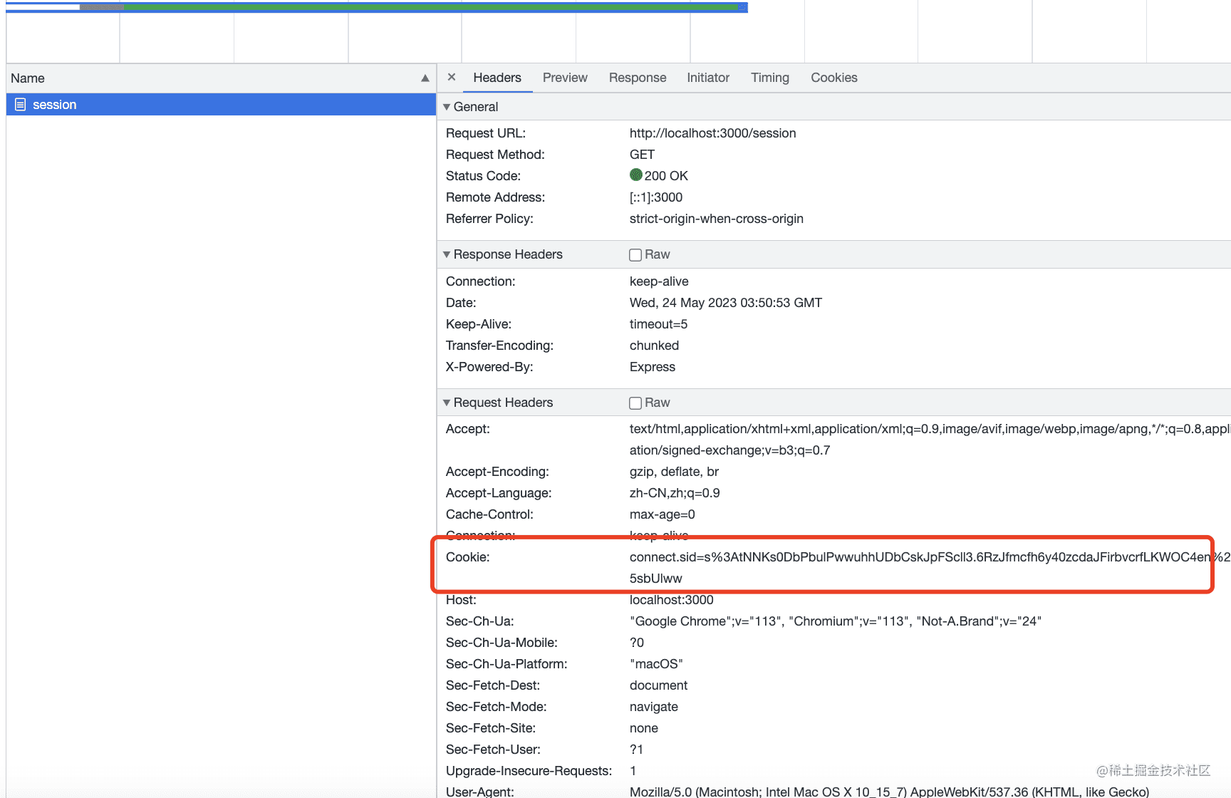 会返回 set-cookie 的响应头,设置了 cookie,包含 sid 也就是 sesssionid。