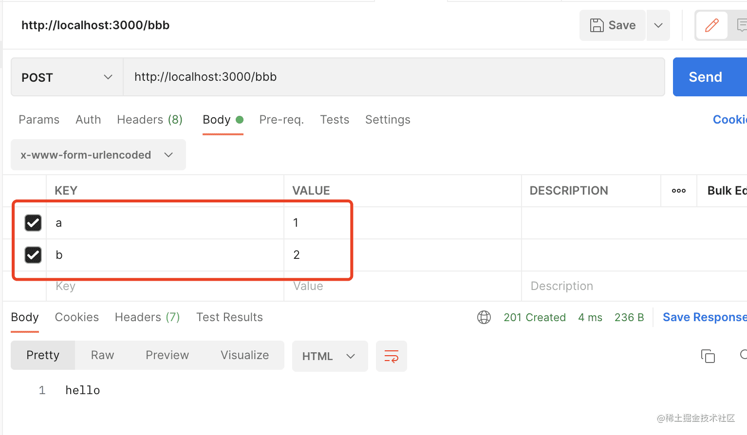 此外,如果是 @Post 请求,可以通过 @Body 取到 body 部分: