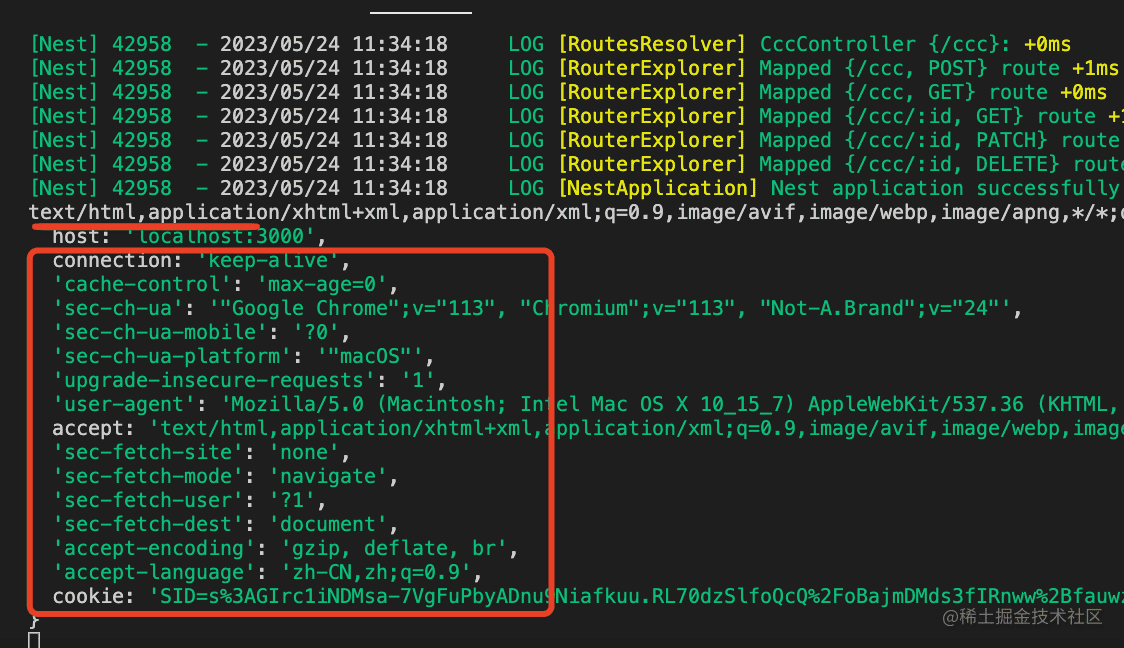 你可以通过 @Headers 装饰器取某个请求头 或者全部请求头:
