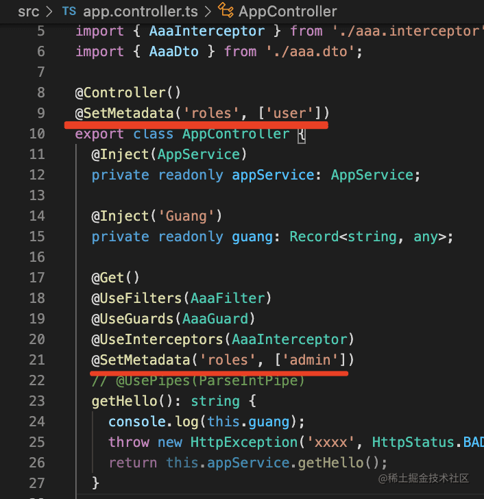 typescript复制代码import { Controller, Get, SetMetadata } from '@nestjs/common';
