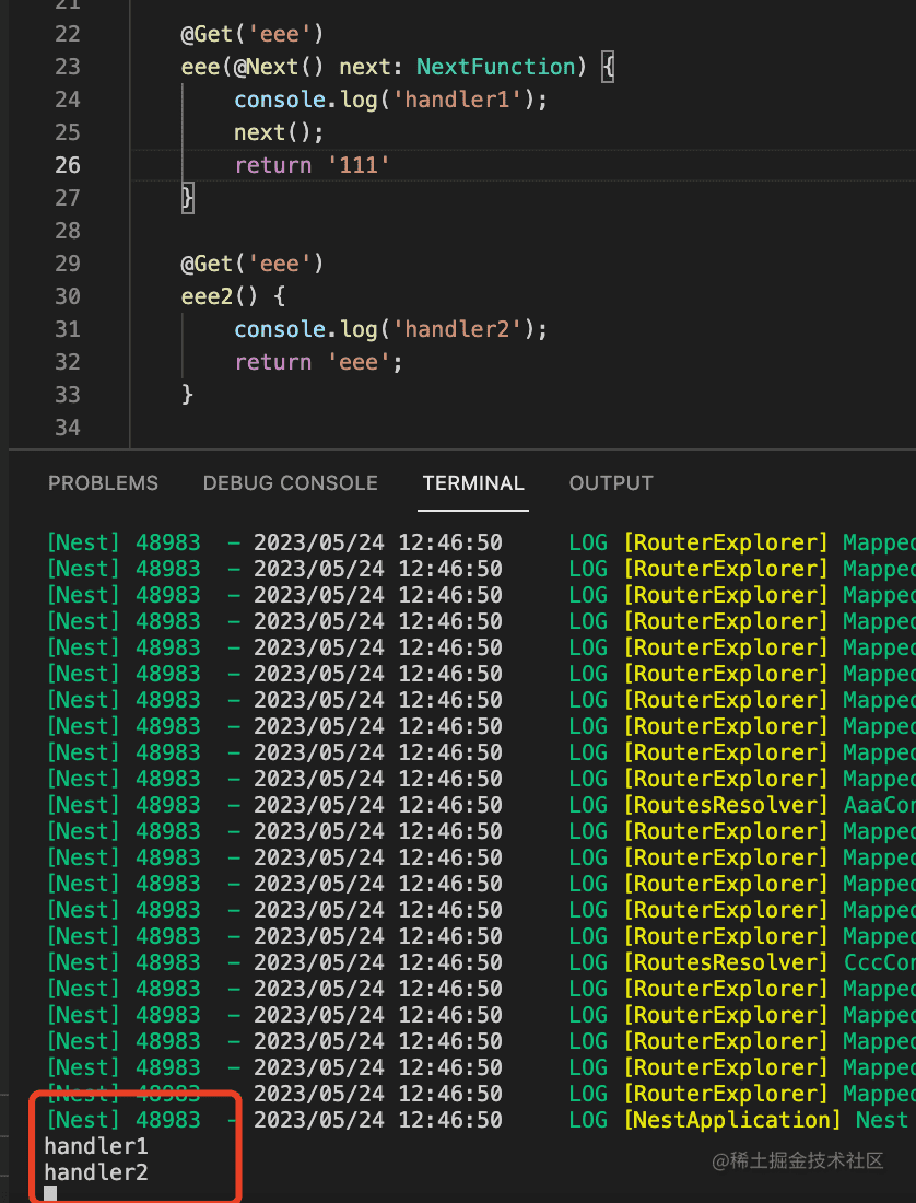Nest 不会处理注入 @Next 的 handler 的返回值。