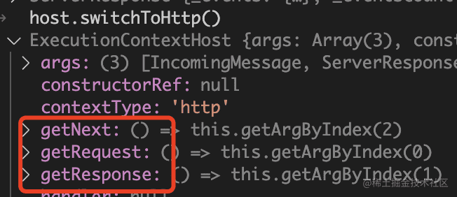 host.getArgs 方法就是取出当前上下文的 reqeust、response、next 参数。