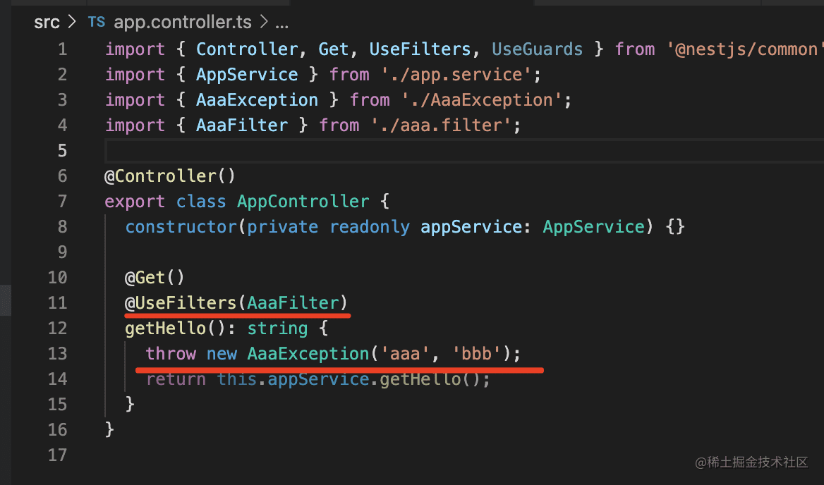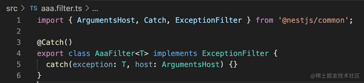 我们创建个 guard 试一下:nest g filter aaa --flat --no-spec