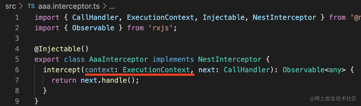 同样,在 interceptor 里也有这个:nest g interceptor aaa --no-spec --flat