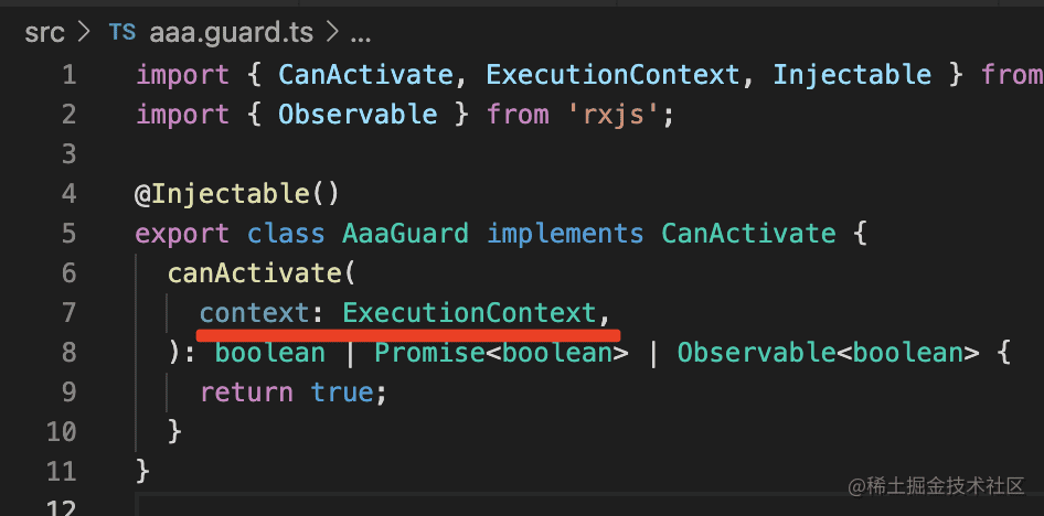 这就是 Guard 里的 ExecutionContext 参数的用法。