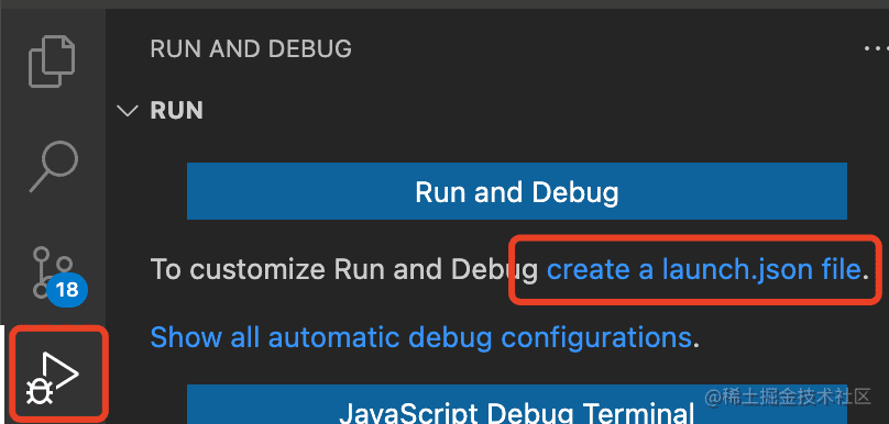 点击 create launch.json file 创建一个调试配置文件: