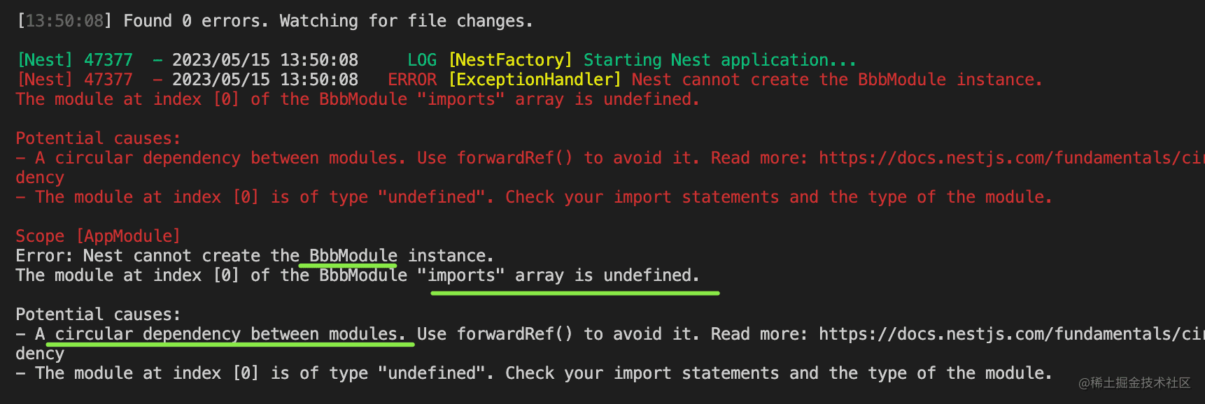 意思是在解析 BbbModule 的时候,它的第一个 imports 是 undefined。