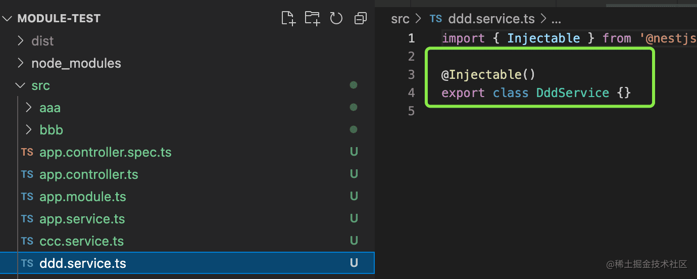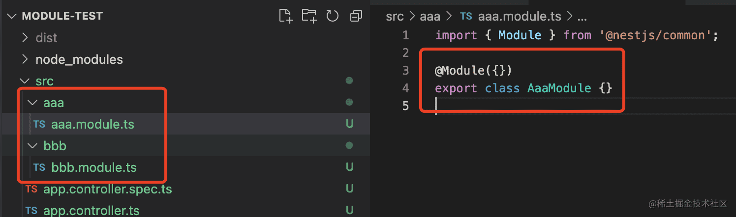 执行nest new module-test -p npm创建一个 nest 项目。