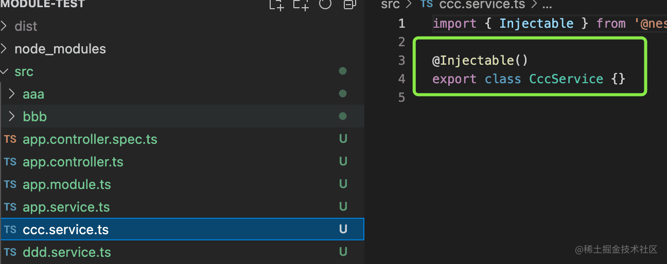 分别创建 ccc 和 ddd 两个 service,--no-spec 是不生成测试文件,--flat 是平铺。
