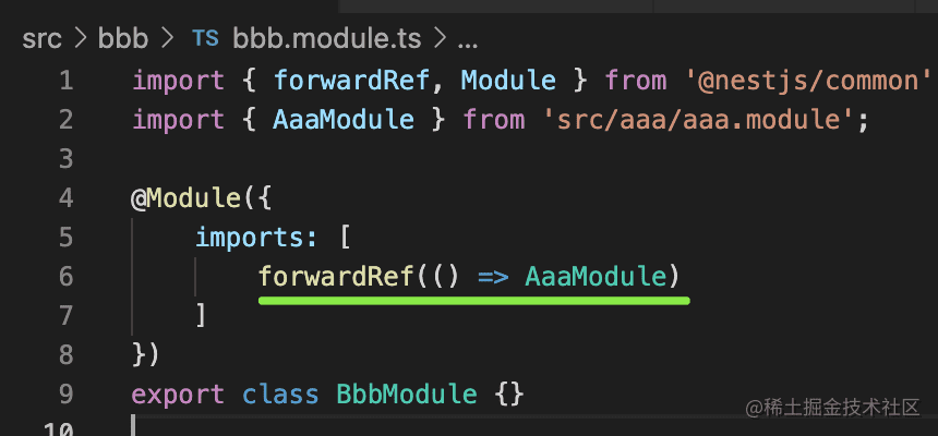它的原理就是 nest 会先创建 Module、Provider,之后再把引用转发到对方,也就是 forward ref。