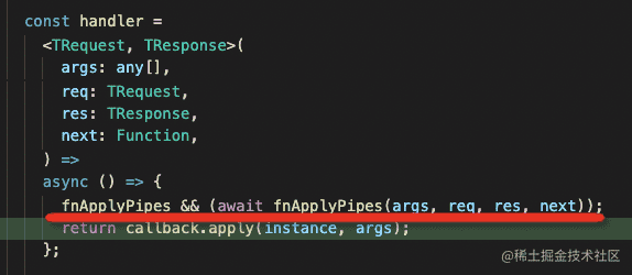 返回的值是 aaaaaa,也就是说 pipe 的返回值就是传给 handler 的参数值。