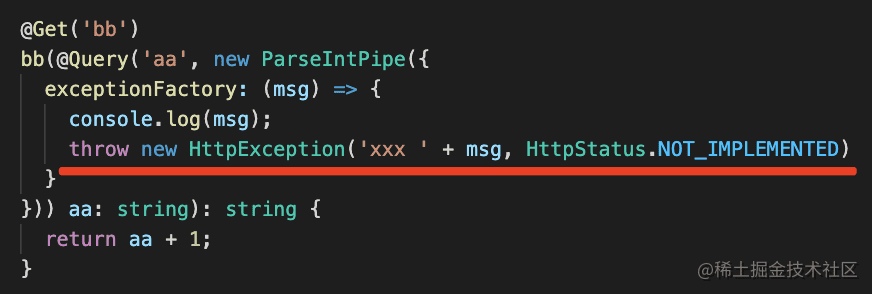 它也同样可以 new ParseFloatPipe 的形式,传入 errorHttpStatusCode 和 exceptionFactory。