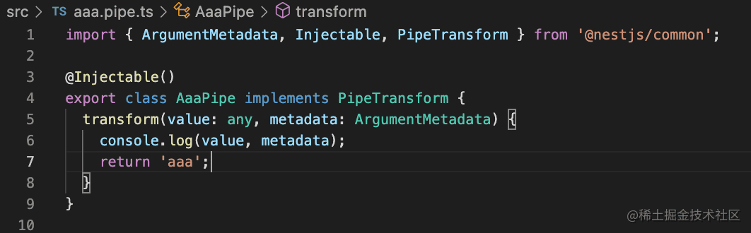 自己写一个 pipe 也很简单,就是实现 PipeTransform 接口的 transform 方法,它的返回值就是传给 handler 的值。