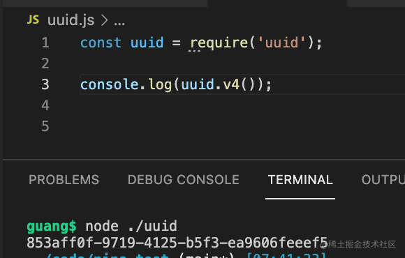 它有 v3、v4、v5 3 个版本,我们用 uuid 包可以生成这种 id: