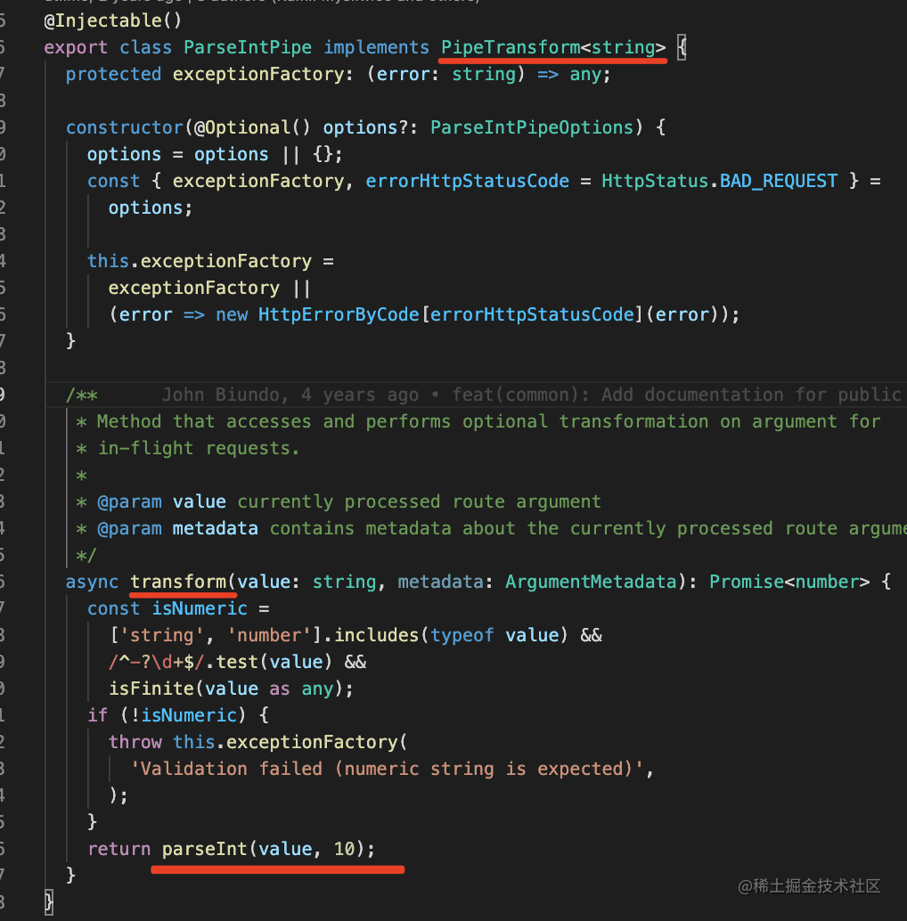 比如 ParseIntPipe 的源码是这样的: