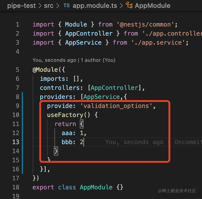 比如,我们指定 @Inject 注入 token 为 validation_options 的对象。