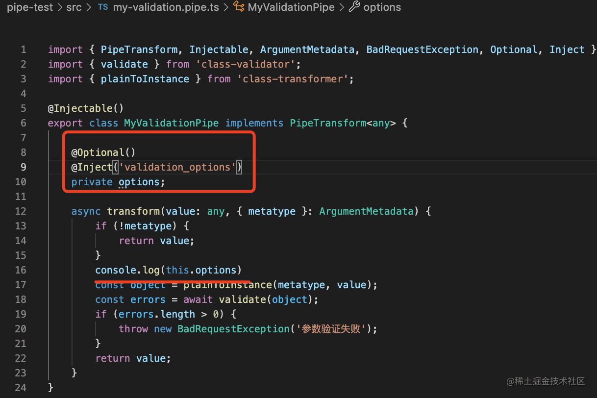 这两者一结合,那 ValidationPipe 是怎么实现的不就想明白了么: