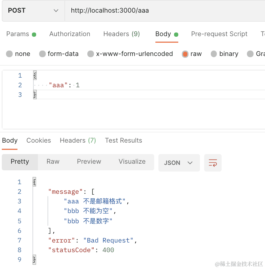 现在,ValidationPipe 的错误和其他的错误就都返回了正确的格式。