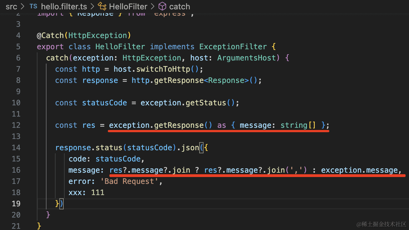 如果捕获的是 HttpException,要注意兼容下 ValidationPipe 的错误格式的处理。
