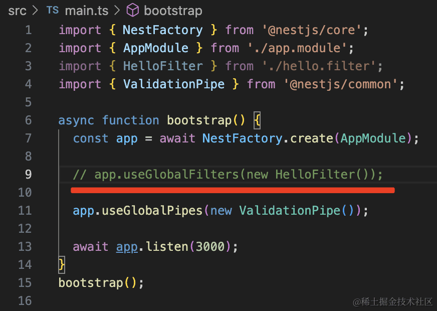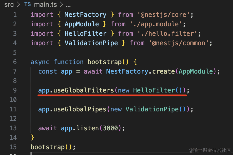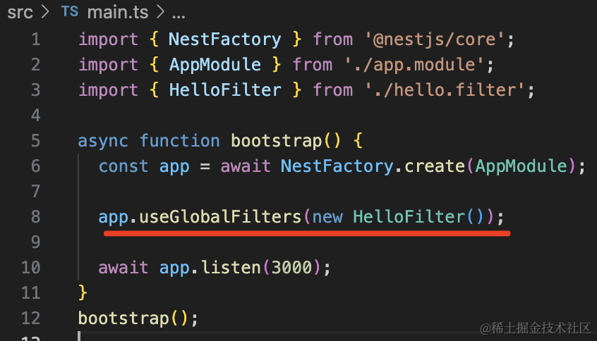 app.useGlobalFilters(new HelloFilter());