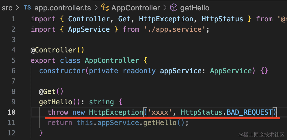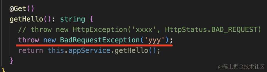 throw new HttpException('xxxx', HttpStatus.BAD_REQUEST)