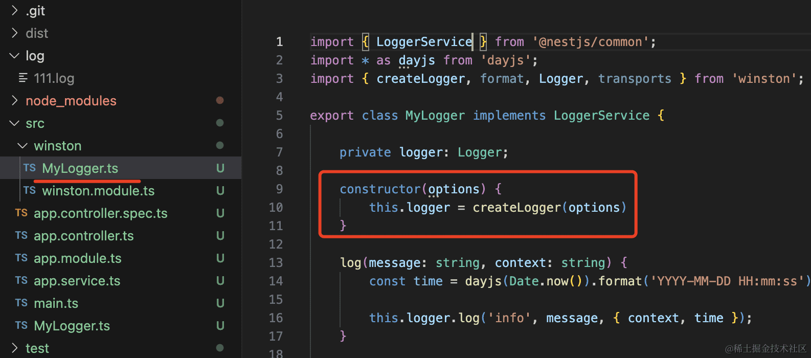 前面我们学过了如何自定义 Nest 的 logger,现在只要在 Logger 的实现里改成 winston 的 logger 就好了。