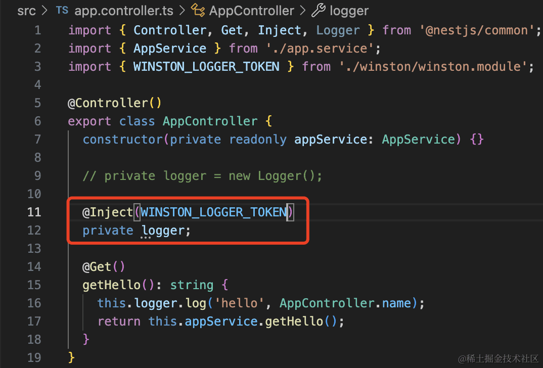 这样,在应用的各处都可以注入我们自定义的基于 winston 的 logger 了。