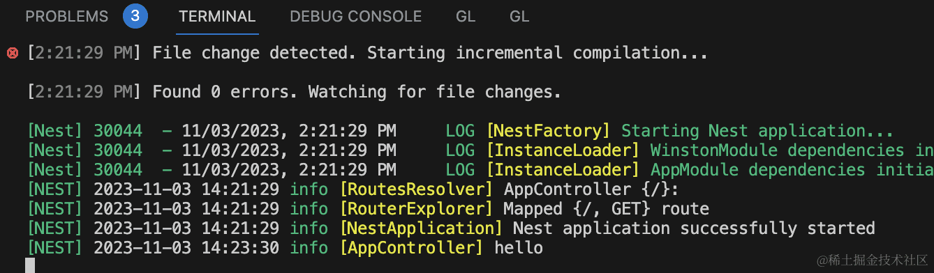 只不过和 nest 原本的日志格式不大一样。