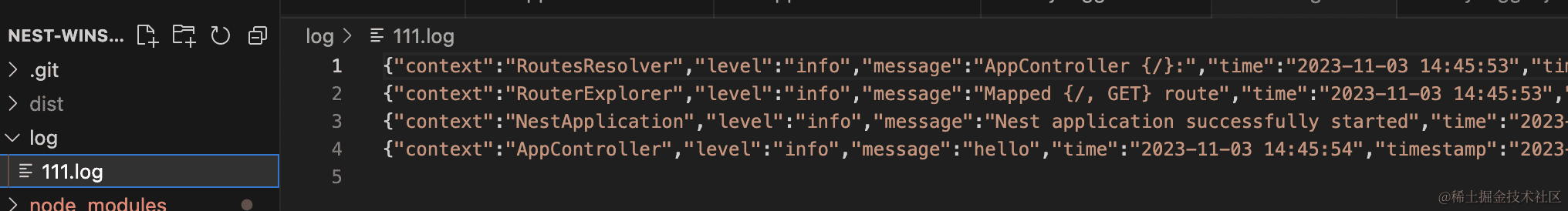 这样,我们就完成了 nest 和 winston 的集成。