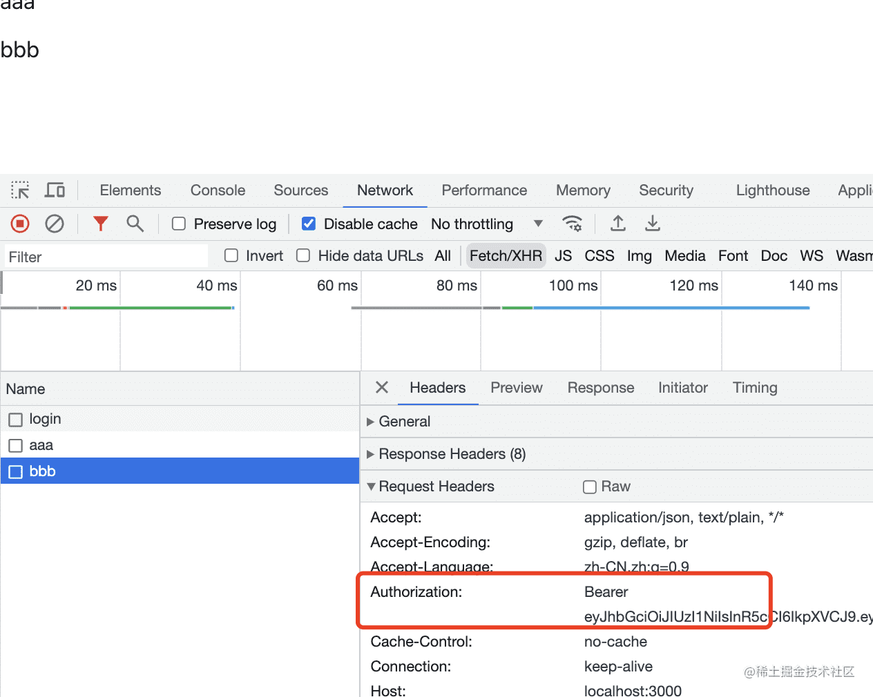 访问了 aaa、bbb 接口,bbb 接口 401 了,于是 refresh token,之后再次访问 bbb。