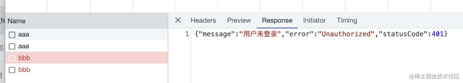 可以看到 /aaa 访问成功,返回了数据,/bbb 返回了 401