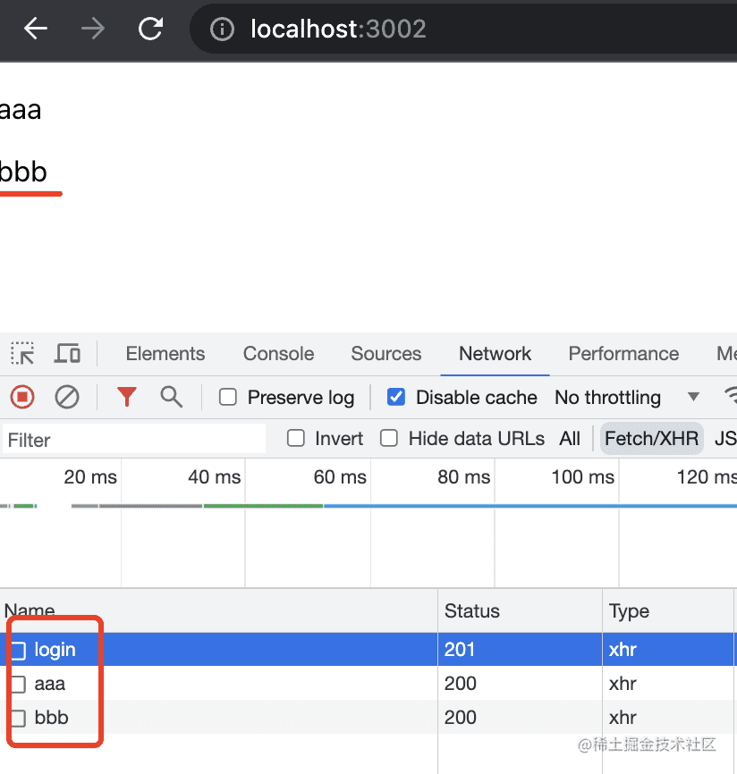 刷新下,可以看到现在请求了 3 个接口,bbb 也正确拿到了数据: