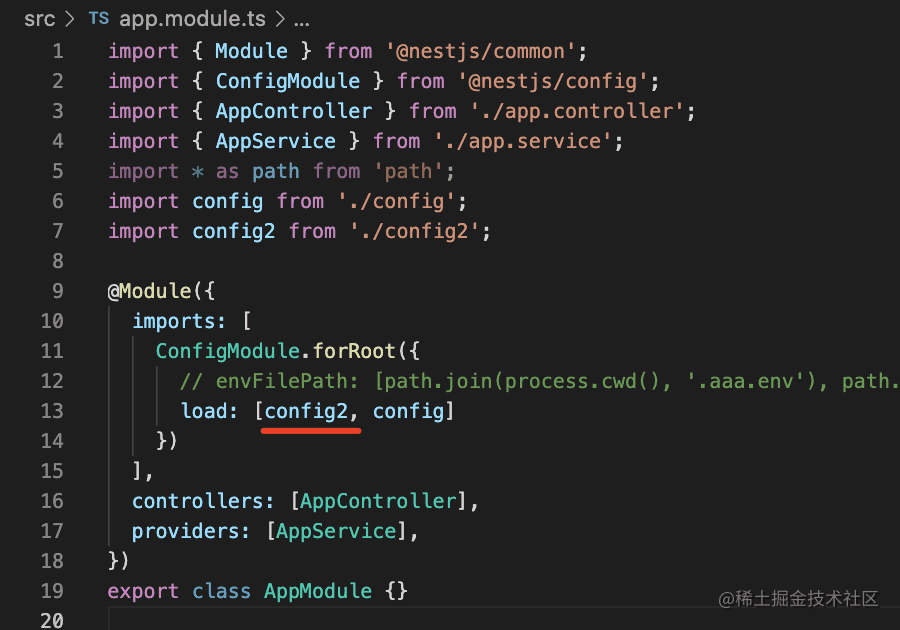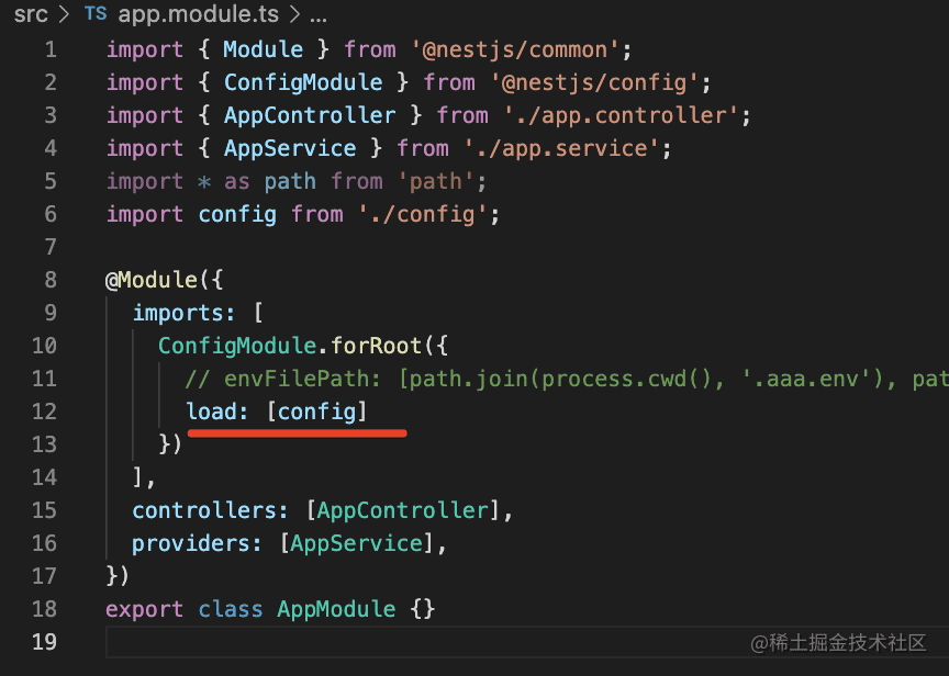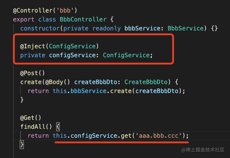 然后在 AppController 里注入 ConfigService 来读取配置: