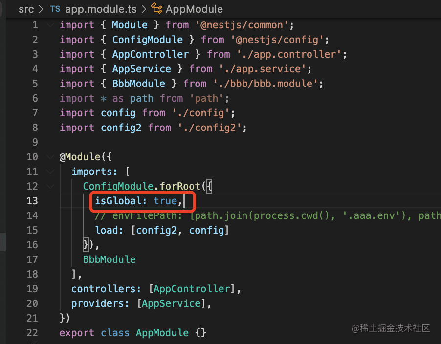 这时候把 ConfigModule.forRoot 注册为全局模块就好了: