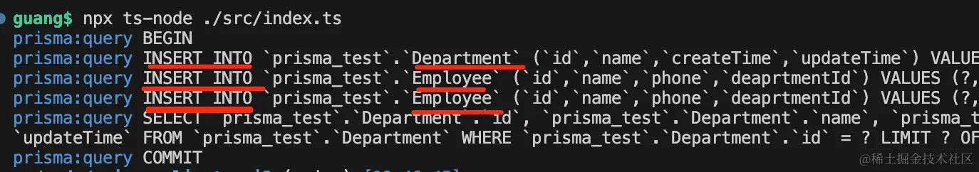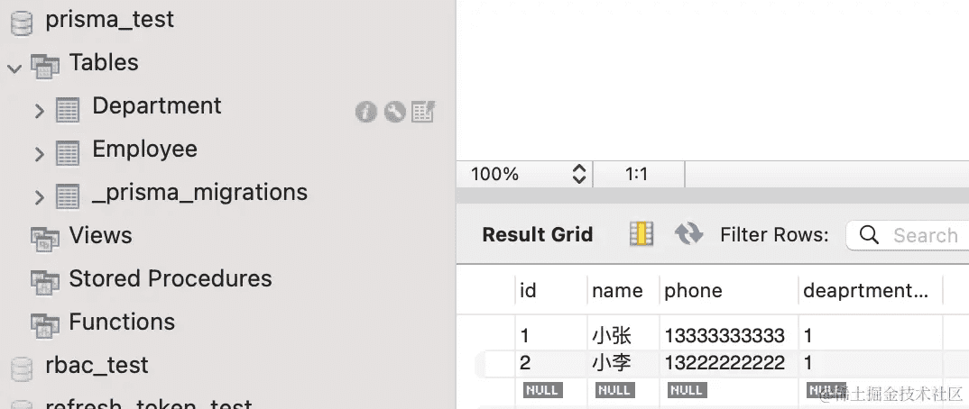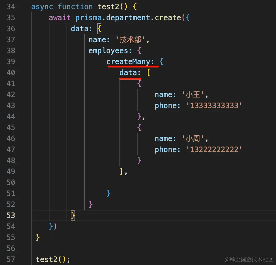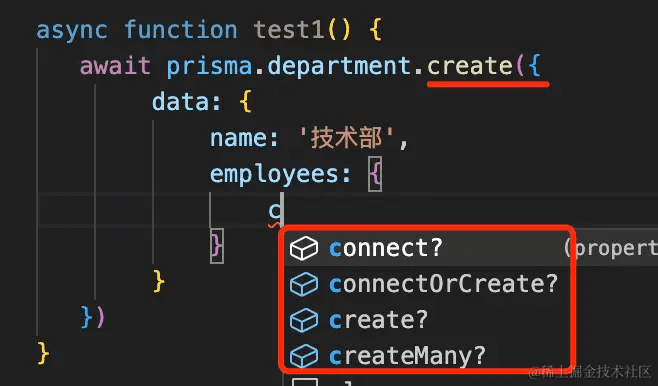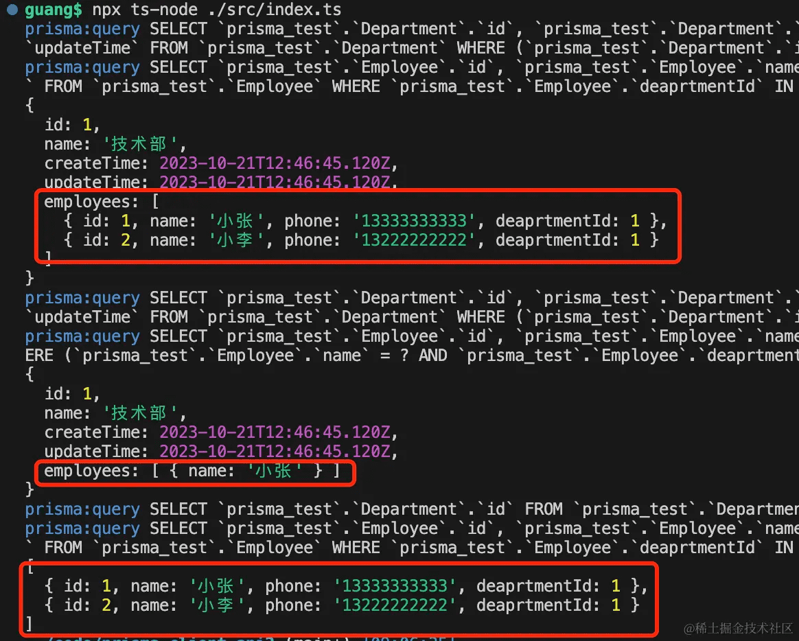 查询 department 的时候,通过 include 指定关联查询出 employees。