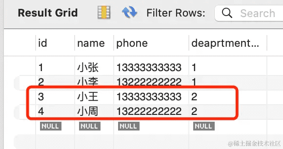 刷新可以看到,id 为 4 的 employee 关联的 department 就变了: