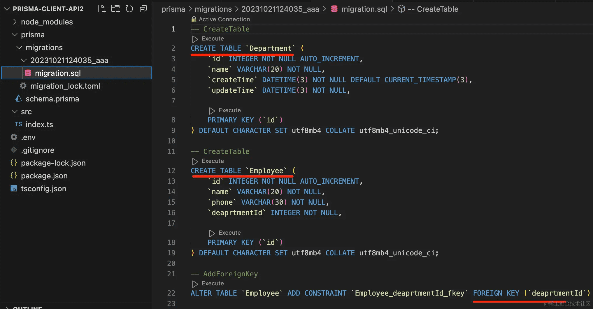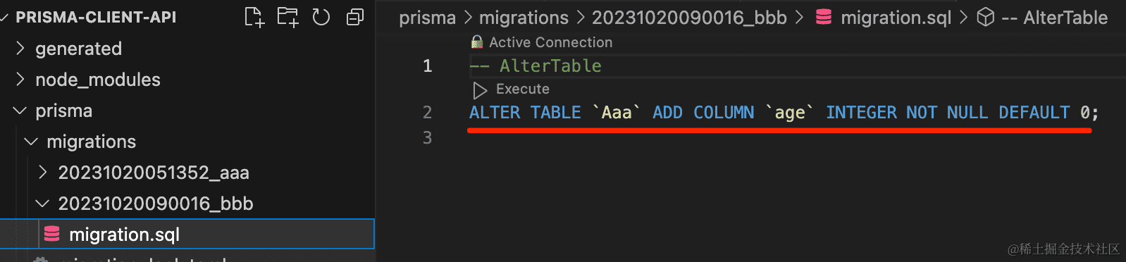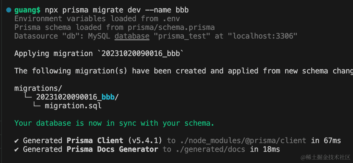 然后用 migrate dev 创建新的迁移:npx prisma migrate dev --name aaa